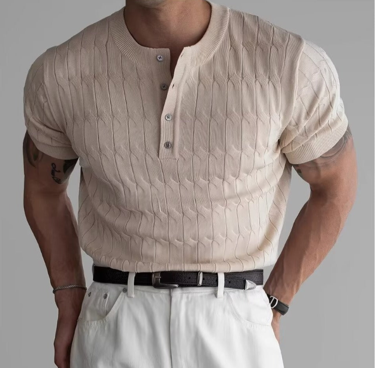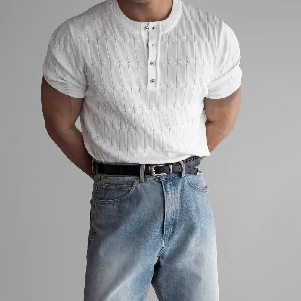 Men’s Textured Button Henley Shirt – Short Sleeve Casual Knit Top
