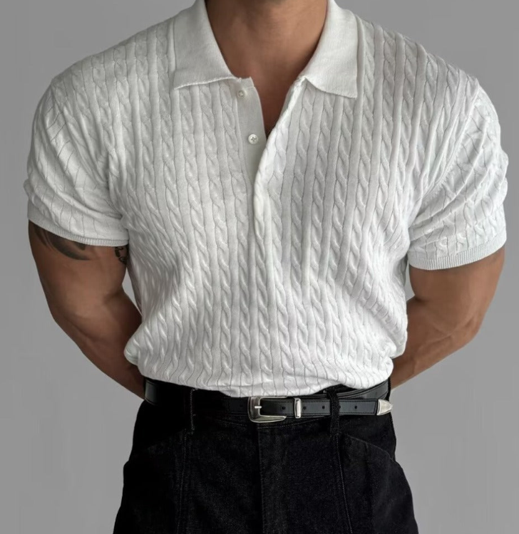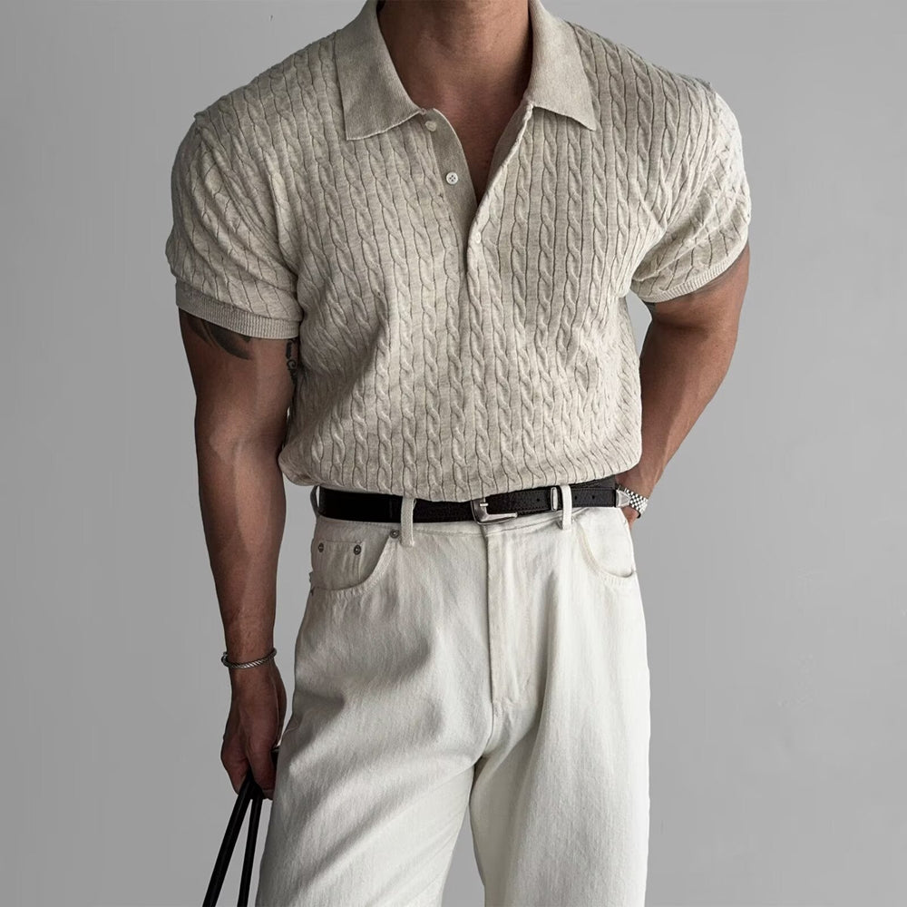 Men’s Textured Casual Dress Cable-Knit Polo Shirt